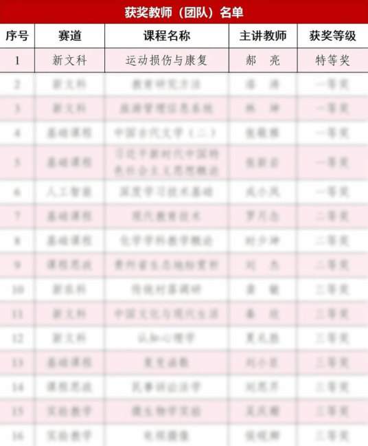 近日,第六届贵州省高校教师教学创新大赛圆满落幕。我院郝亮老师及其团队凭借课程《运动损伤与康复》,在新文科赛道中表现有益,荣获特等奖!