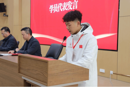 2025级社会体育指导与管理班班长周艺博同学代表培训班学员发言,他结合自身对“青马工程”的理解,表达了“不负时代、不负韶华”的学习决心,展现体育青年的蓬勃朝气与担当意识。