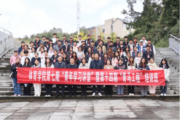 2025年11月4日,体育学院在学院一楼学术报告厅举办第七期“青年学习讲堂”暨第十四期“青马工程”培训班开班仪式。学院党委书记吕涛、副院长杨中兵、党委副书记张怀德、党委组织员杨馥瑞、团委书记张雪雷及全体学员参会。