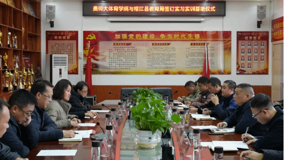 11月19日,榕江县教育局与贵州师范大学体育学院实习实训基地签约仪式在榕江县古州二小举行。榕江县委副书记饶杰、县教育局局长杨勇,贵州师范大学体育学院党委书记吕涛、副院长杨中兵,榕江县相关部门负责人、贵州师范大学体育学院相关教师参加。