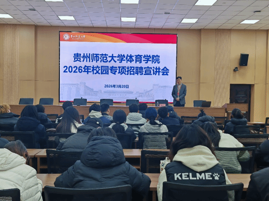 为拓宽2026届毕业生就业渠道,精准对接体育行业人才需求,搭建校企沟通桥梁。3月20日,学院邀请深圳创维集团、贵州领航者拓展文化发展有限公司、贵阳市搏乐体育文化产业发展有限公司三家企业来院举办2026届毕业生专场招聘宣讲会,学院领导、毕业班辅导员及2026届毕业生参加宣讲活动。